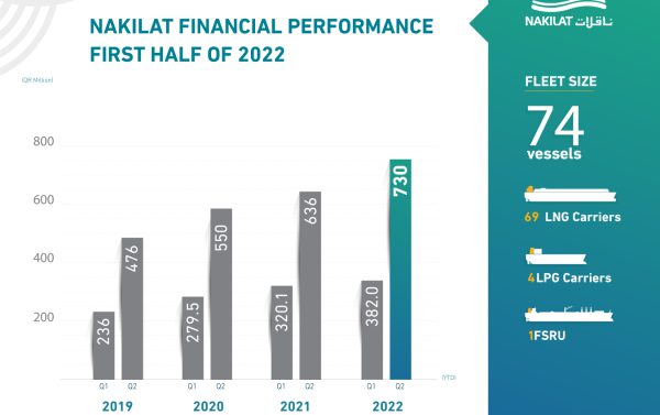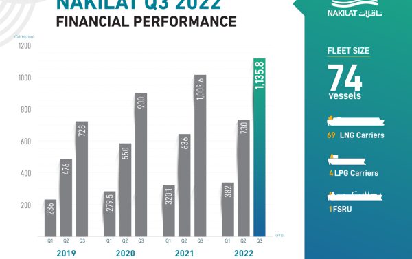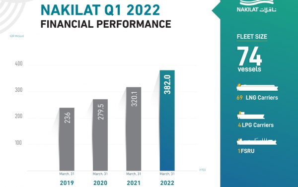 Nakilat, the world’s largest Liquefied Natural Gas (LNG) fleet operator achieved a net profit of QR 382 million for the first quarter ended March 31, 2022, compared to