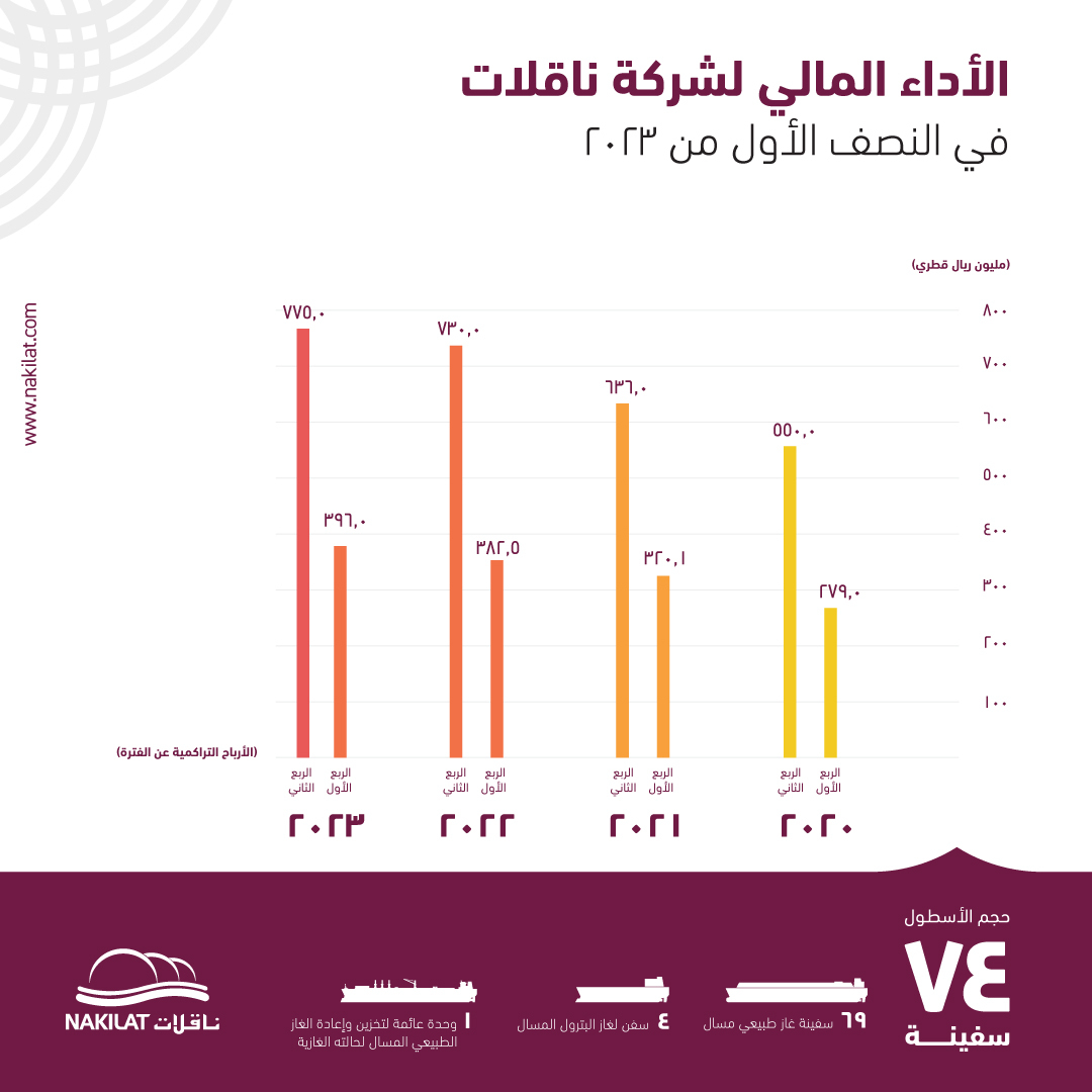 ناقلات تحقق صافي ربح قدره 775 مليون ريال قطري عن النصف الأول من العام 2023